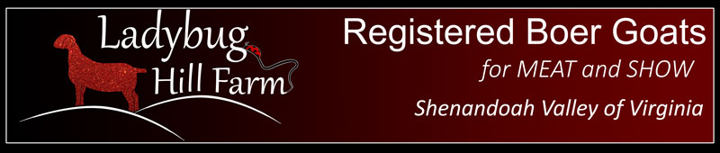 Ladybug Hill is a small 8 acre farm located in Rawley Springs at the base of the beautiful Allegheny Mountain ridge, west of Harrisonburg Virginia. Once a horse farm, Ladybug Hill is now primarily a hobby farm with a focus on raising Boer goats and commercial rabbits, including some pedigreed New Zealands.